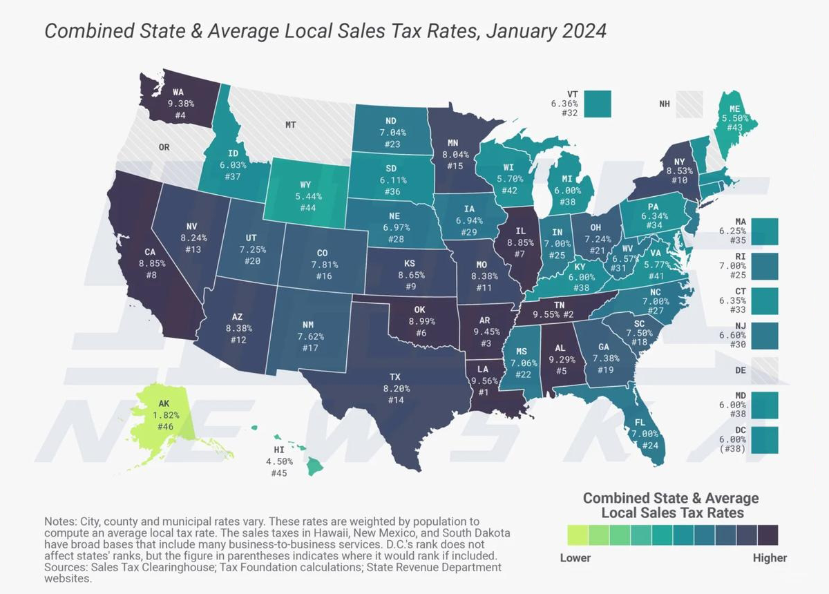 所得稅:分州所得稅和聯(lián)邦所得稅21%,銷售稅:需要申請(qǐng)銷售許可證。